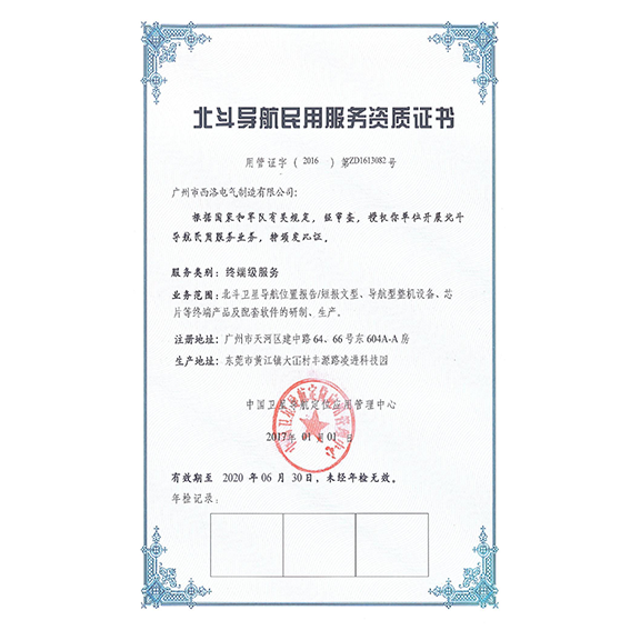 资质名称: 北斗导航民用终端级服务资质 |