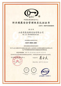 资质名称: 职业健康安全管理体系认证证书 |