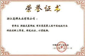 第三届中国地板行业科技创新三等奖