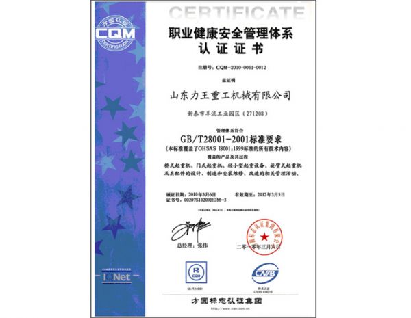 职业健康安全管理认证证书 发布时间: 2017-07-11 16:41:39 发布网站: 中国电力物资网