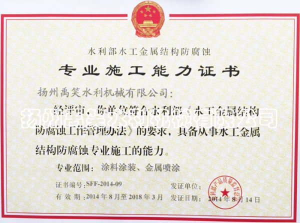 | 资质单位: 扬州禹笑水利机械有限公司 |