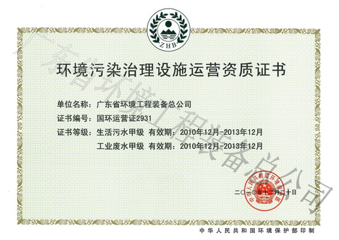 环境污染治理设施运营资质证书1 发布时间: 2017-07-18 14:36:13 发布网站: 中国电力物资网