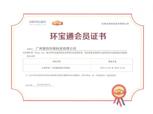 | 资质单位: 颖创环保---上海分公司 |