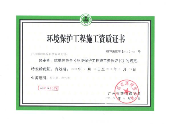 资质名称: 环境保护工程施工资质证书 |