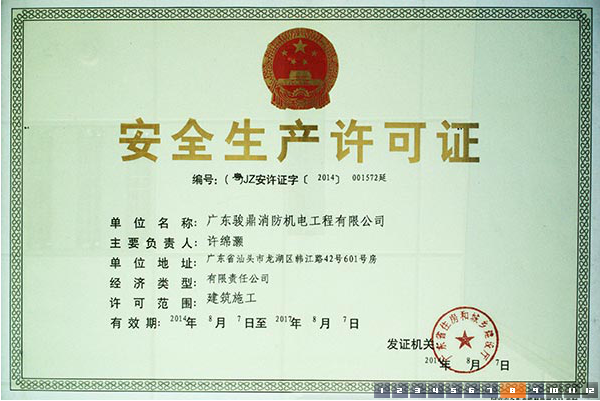 | 持证单位: 广东骏鼎消防机电工程有限公司 |
