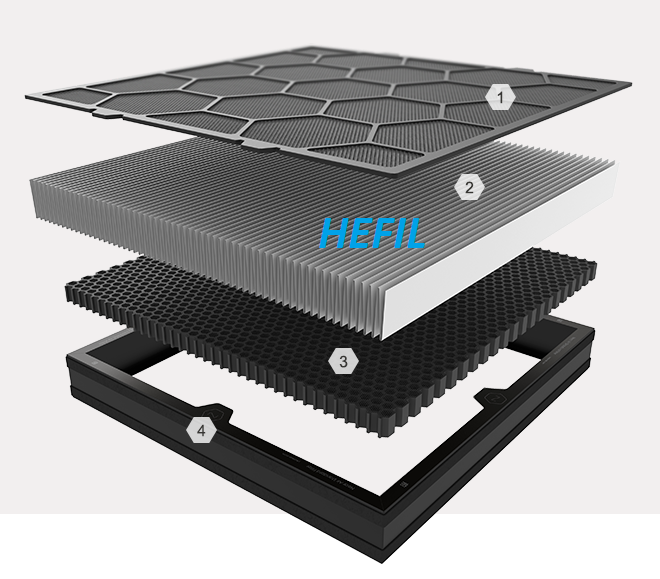 ② 美国工业级HEPA过滤网: 采用美国HV 滤纸,PM2.5过滤99.97%, PM0.3过滤95%